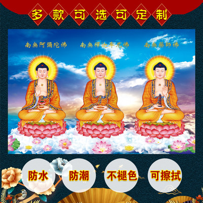 三宝佛画像挂画三世佛释迦牟尼佛药师佛阿弥陀佛横三世佛佛像挂画 虎窝淘